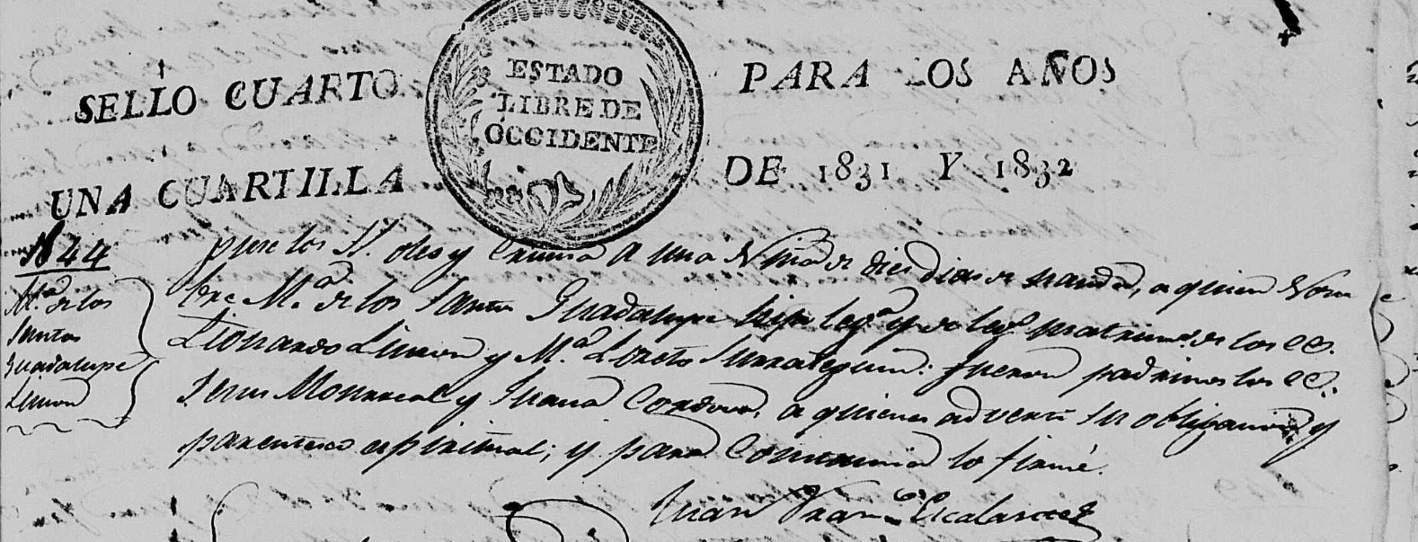 - On the 17th, I baptized a girl ten days old, whom I named María de los Santos Guadelupa, daughter of Leonardo Limón and María Loreto Surratequin, residents of this parish. The godparents were Juan Manadero and Juana Cordova, to whom I explained the obligations and spiritual kinship. To certify, I signed this document.
